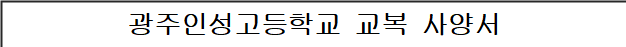 2026학년도 광주인성고등학교 교복(동복·하복) 규격서 참조