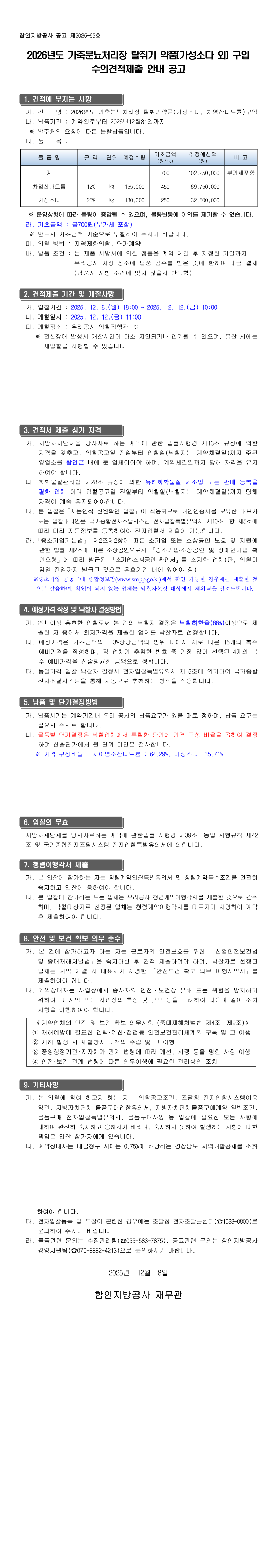 2026년도 가축분뇨처리장 탈취기 약품(가성소다 외) 구입 |