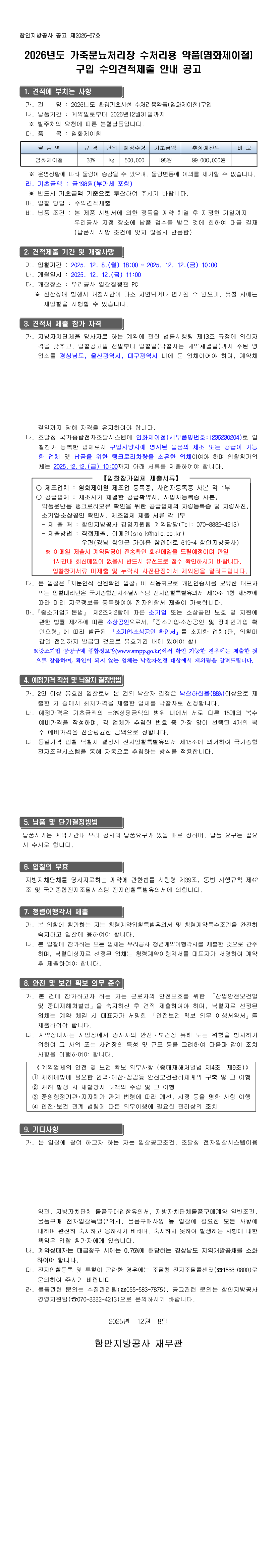 2026년도 가축분뇨처리장 수처리용 약품(염화제이철) 구입 |