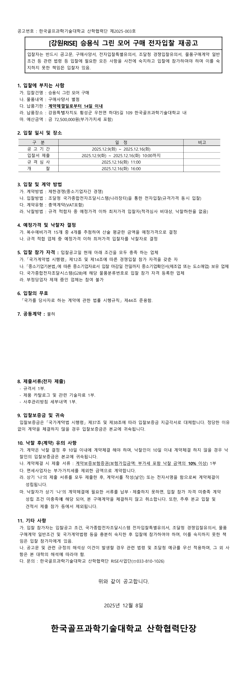 [강원RISE]승용식 그린 모어 구매 전자입찰 공고(재공고) |