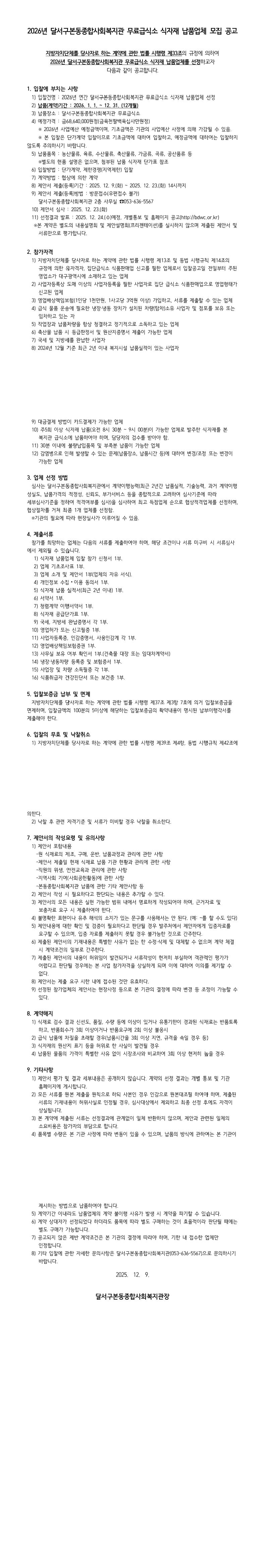 2026년 무료급식소 운영 사업 연간 식자재 납품업체 모집 공고 |