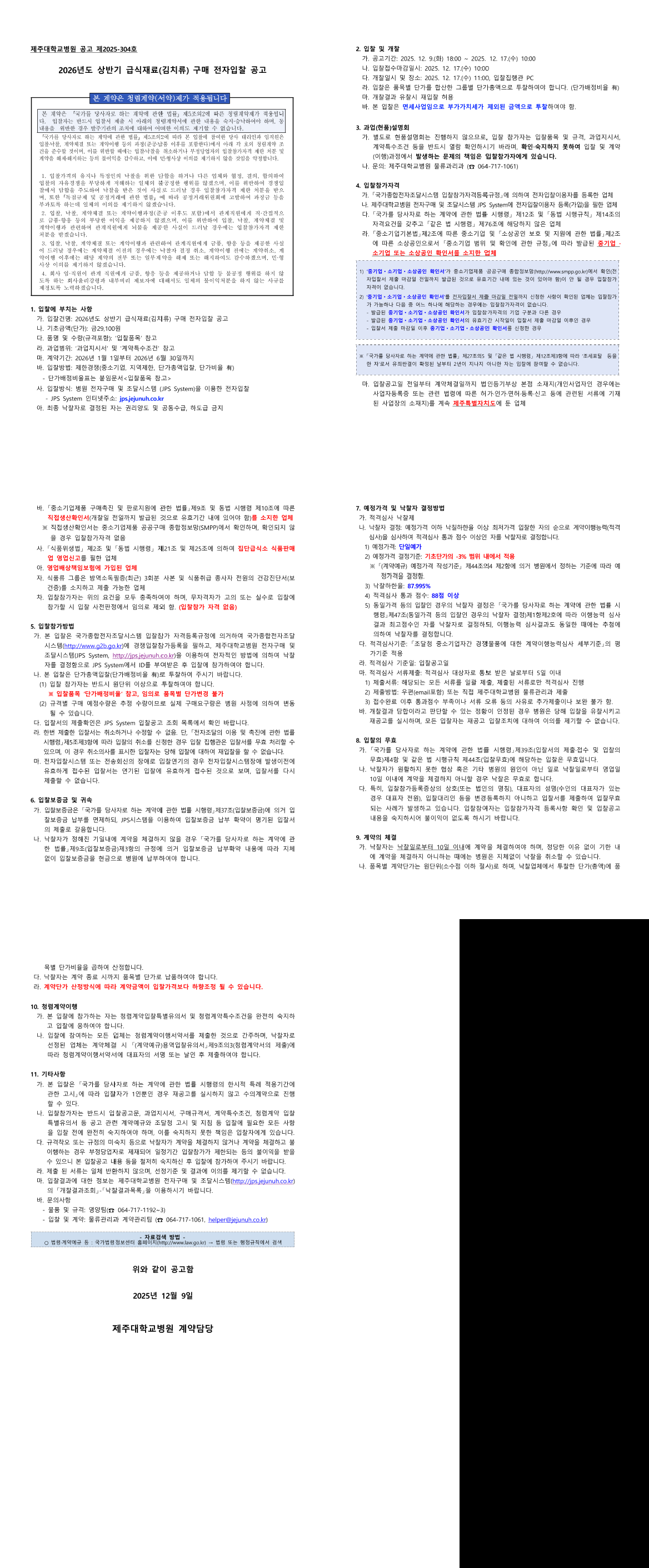 2026년도 상반기 급식재료(김치류) 구매 전자입찰 공고 |