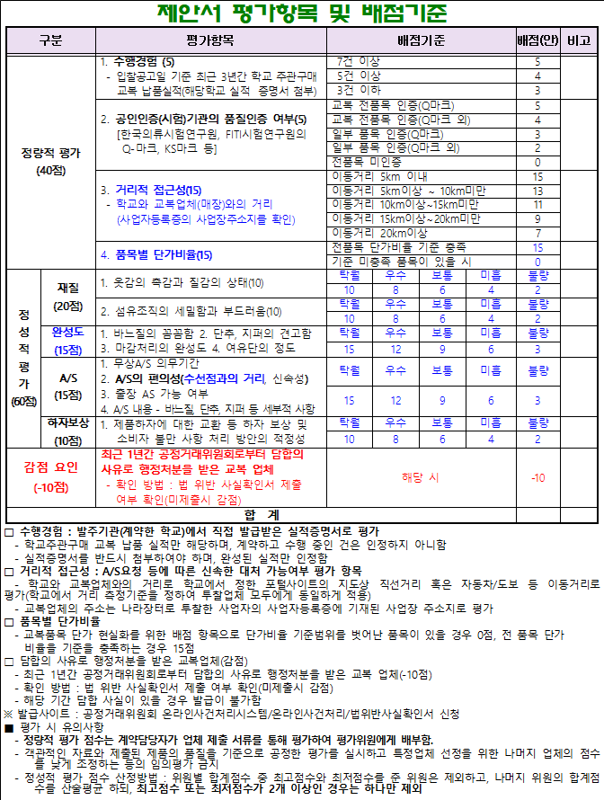 3) [붙임 6] 교복(동․하복) 납품 제안서 9부(평가위원 8부 + 계약부서 보관용 1부)