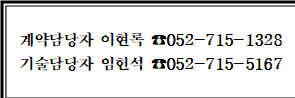 마. 본 건 기술사항 담당자는 아래와 같습니다.(붙임. 자재내역 및 담당자 현황 참조)