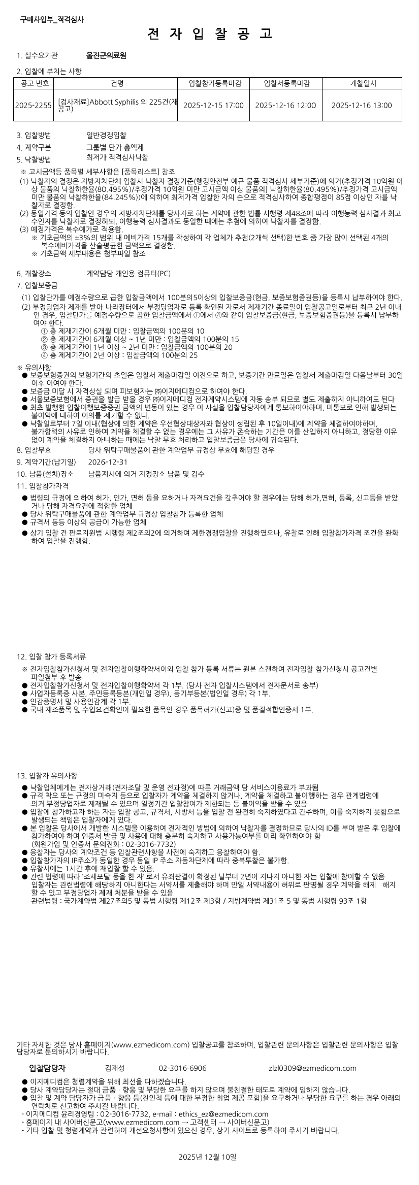울진군의료원[검사재료]Abbott Syphilis 외 225건(재공고) |