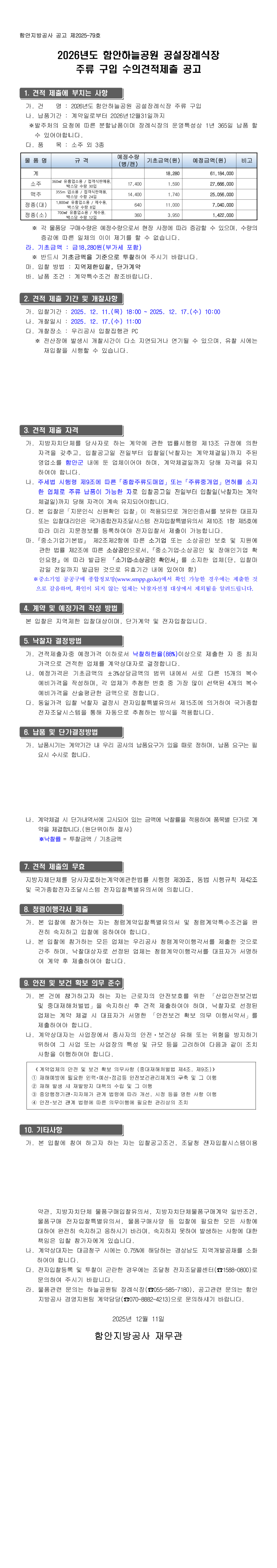 2026년도 함안하늘공원 공설장례식장 주류 구입 |
