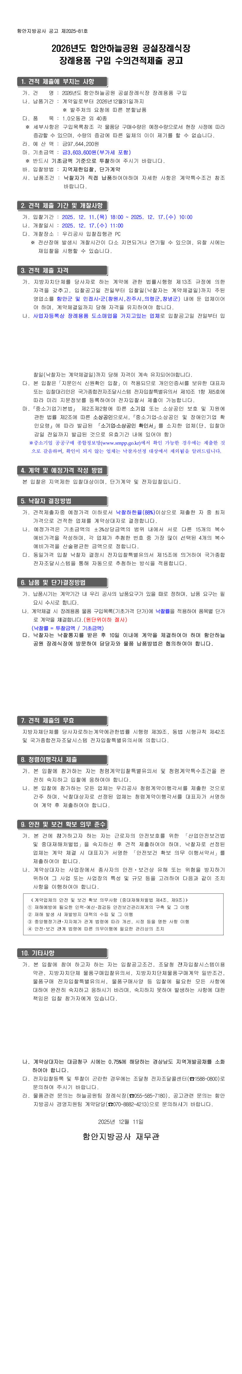 2026년도 함안하늘공원 공설장례식장 장례용품 구입 |