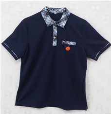 춘추복 남학생 셔츠 공용배색 처리는 셔츠 옷감과 같은 재질의 파란 사선 체크무늬이며,