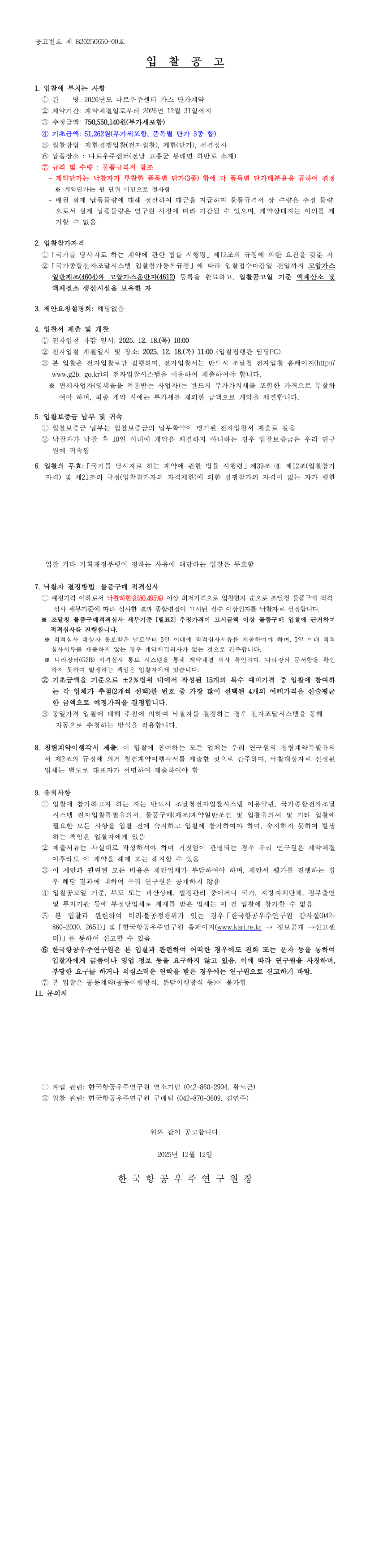2026년도 나로우주센터 가스 단가계약 |
