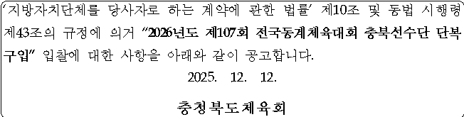 1) 사 업 명: 2026년도 제107회 전국동계체육대회 충북선수단 단복 구입