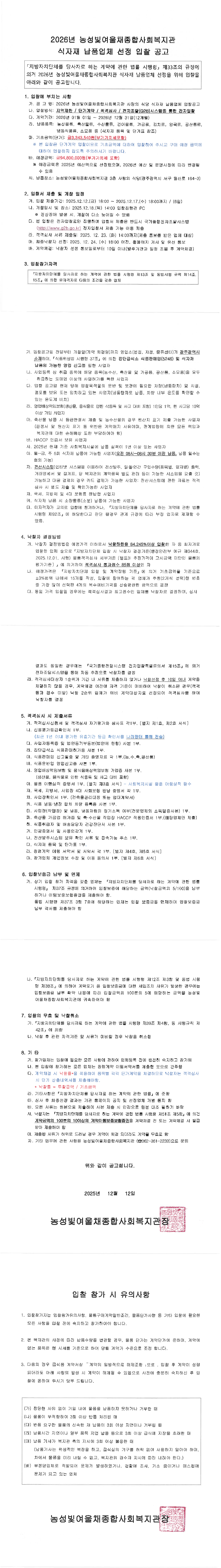 2023년 농성빛여울채종합사회복지관 식자재 납품업체 입찰 공고 |