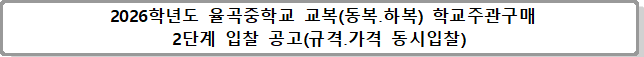 「지방자치단체를 당사자로 하는 계약에 관한 법률 시행령」제18조(2단계 입찰) 규정에 의거 2026학년도 율곡중학교 교복(동복․하복) 학교주관 구매 업체 선정을 위해 다음과 같이 공고합니다.