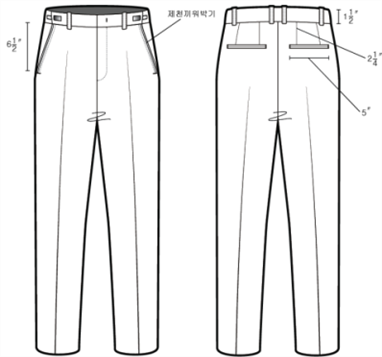 하복 반바지 제작 규격서(시험검사 항목표 포함)