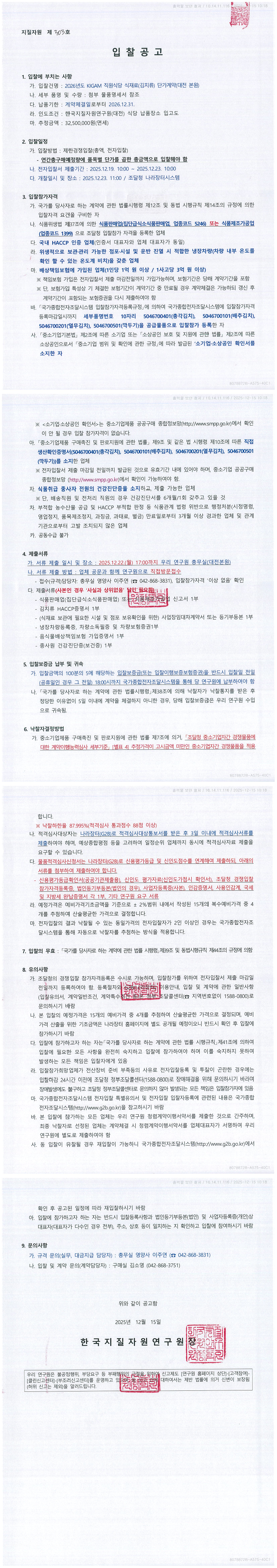 2026년도 KIGAM 직원식당 식재료(김치류) 단가계약(대전 본원) |