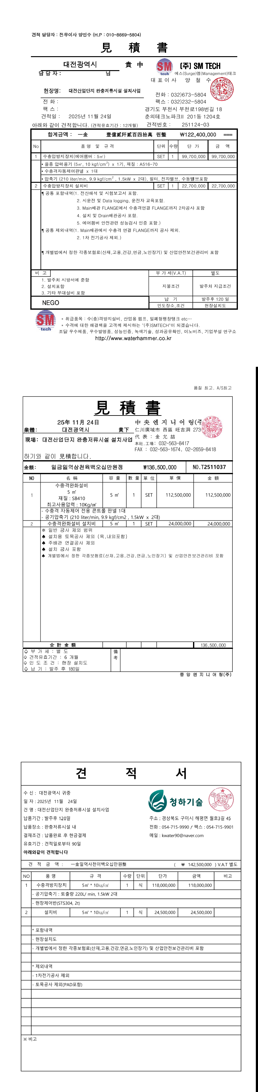 대전산업단지 완충저류시설 설치사업 기계설비공사 관급자재(수충격방지설비) 제조 설치 |