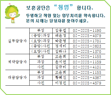아. 본 공고는 우리공단 홈페이지(www.bohun.or.kr) 게재되며, 기타 자세한 사항은 아래 연락처로 문의하시기 바랍니다.