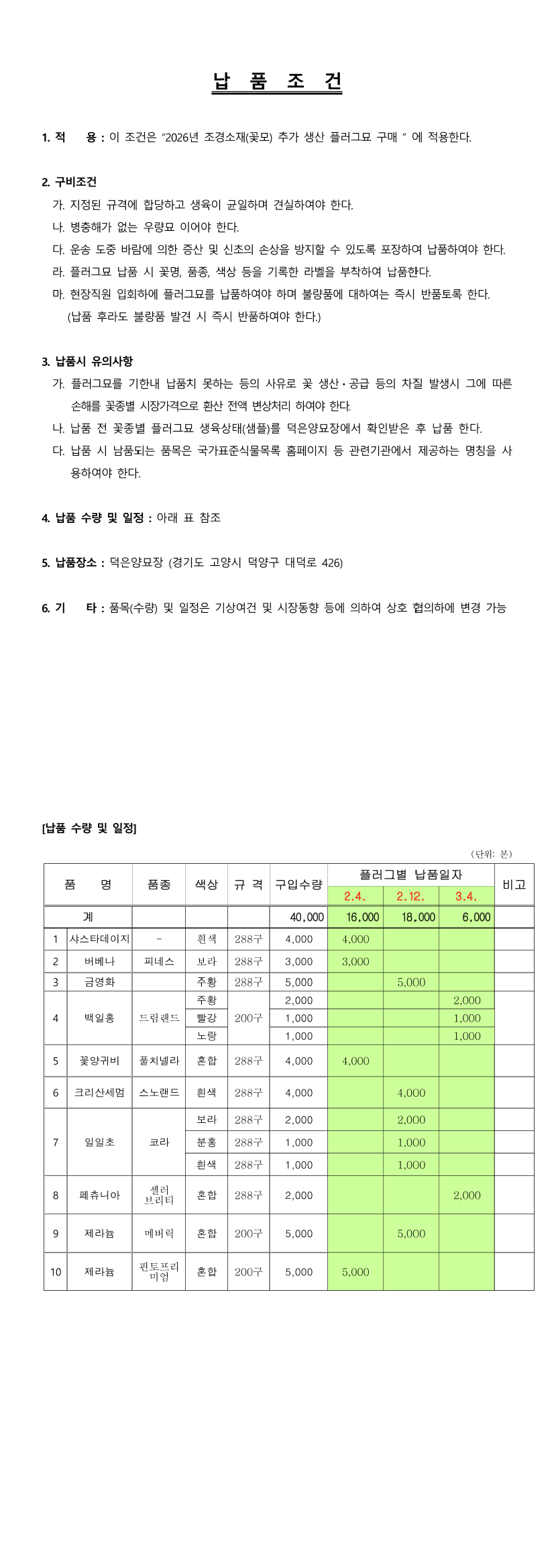 2026년 조경소재(꽃모) 추가 생산 플러그묘 구매 |