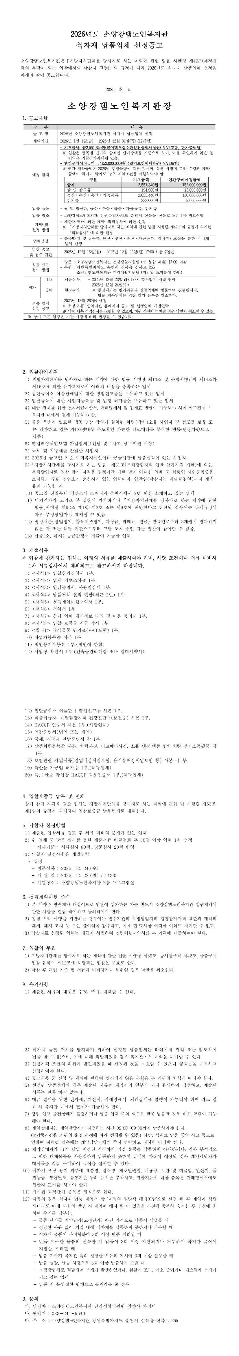 2026년 소양강댐노인복지관 식자재 납품업체 선정 공고 |