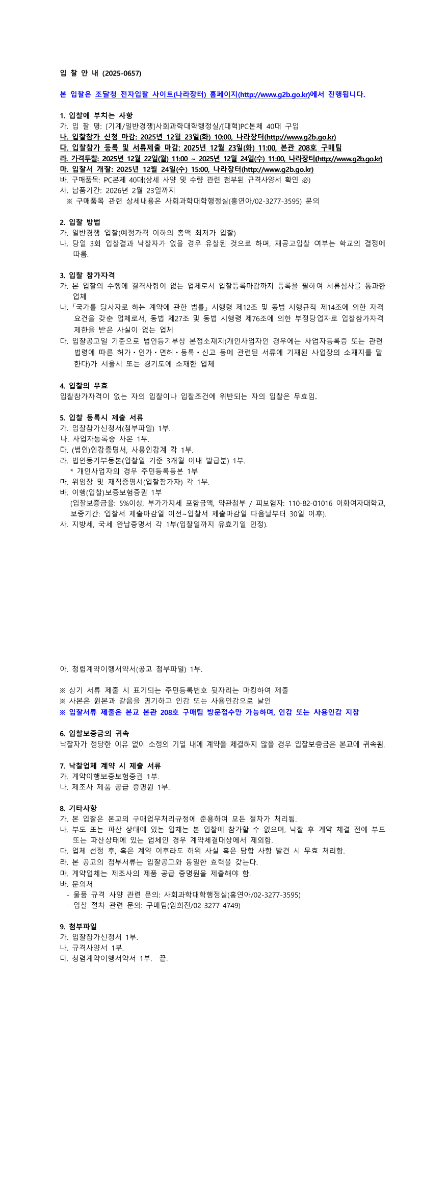 [기계/일반경쟁]사회과학대학행정실/[대혁]PC본체 40대 구입 |