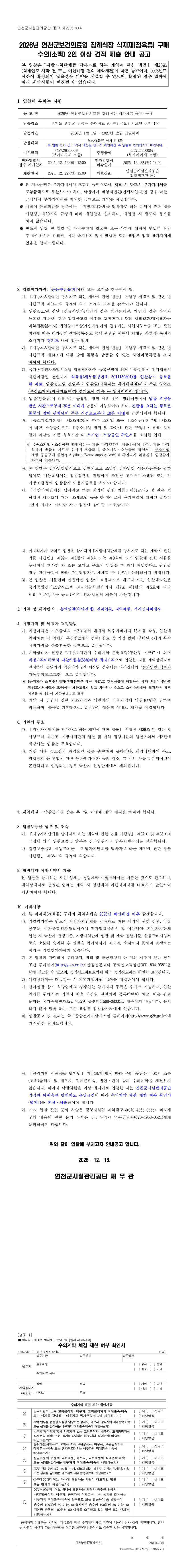 2026년 연천군보건의료원 장례식장 식자재(정육류) 연간구매 |