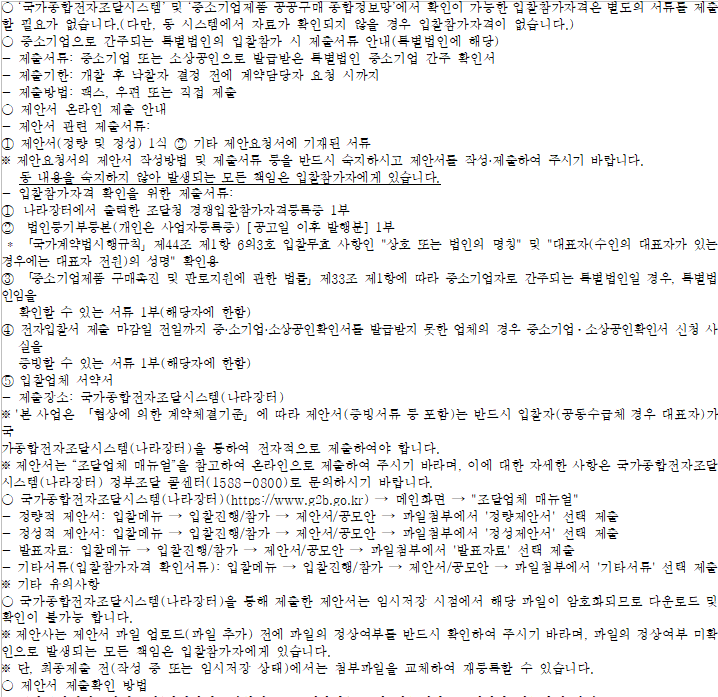 기타 세부사항은 전자입찰 공고서에 첨부된 과업내용서, 내역서 등을 반드시 확인하시기 바랍니다.