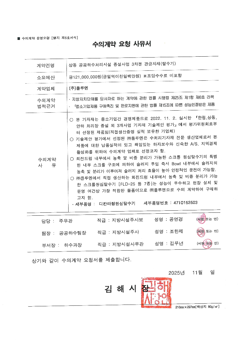 상동 공공하수처리시설 증설사업(3차분) 관급자재(탈수기) 구입 |