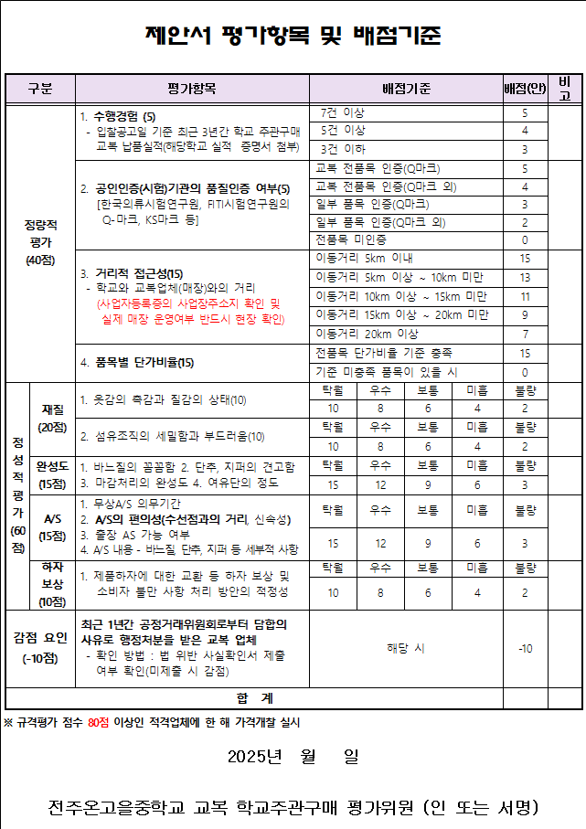 1. 건 명 : 2026학년도 전주온고을중학교 교복(동·하복) 학교주관 구매