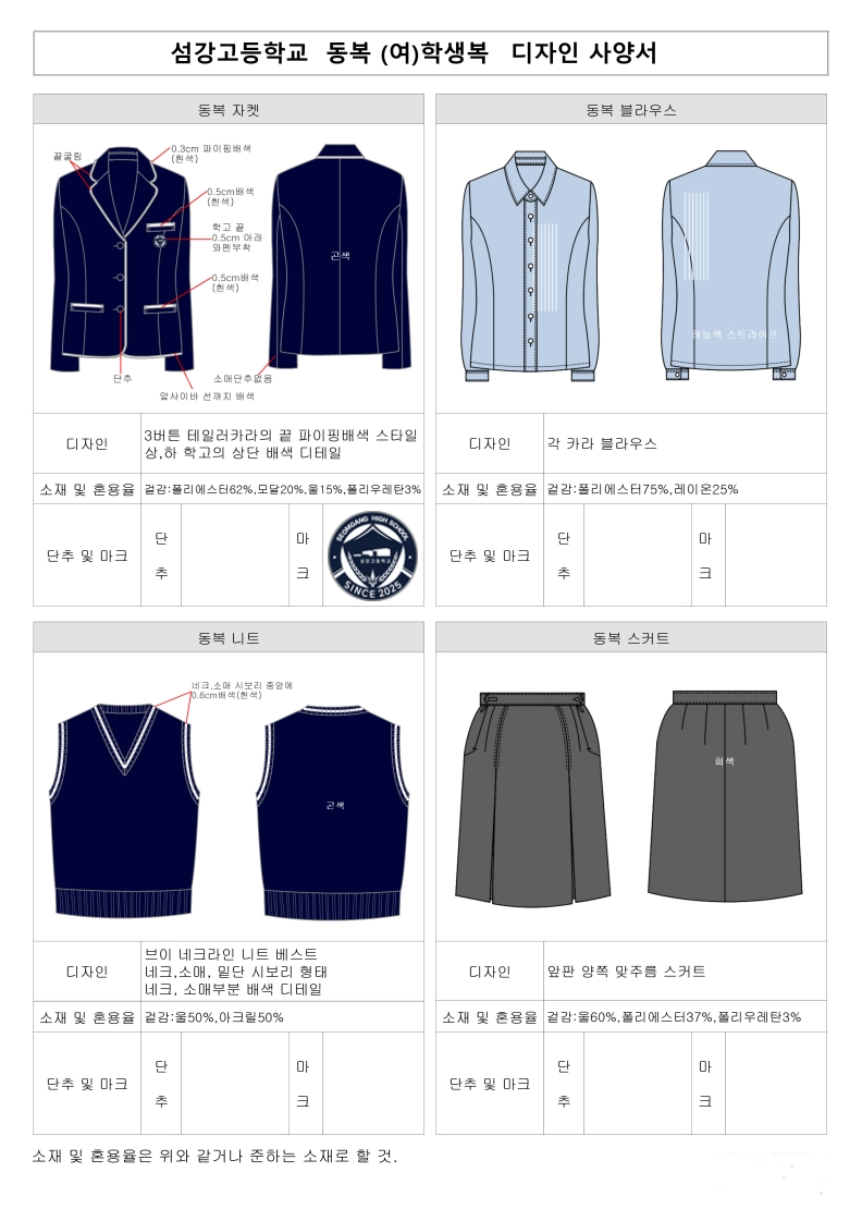 ● 섬강고등학교 교복 제작 사양서(붙임1) 참조