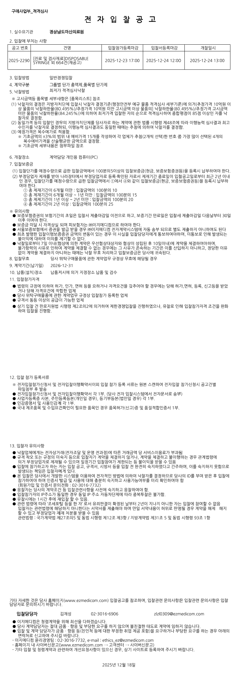 마산의료원[진료 및 검사재료]DISPOSABLE SYRINGE 외 664건(재공고) |