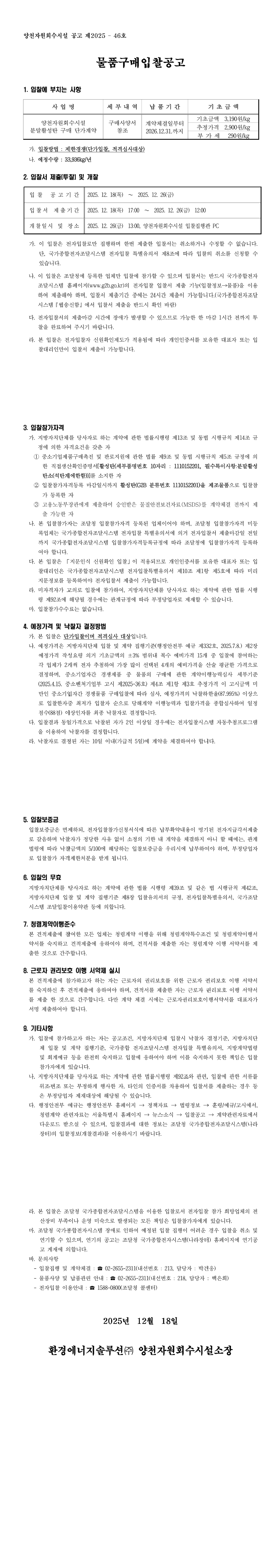 양천자원회수시설 분말활성탄 구매 단가계약 |