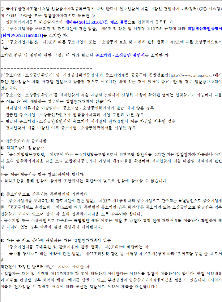 기타 세부사항은 전자입찰 공고서에 첨부된 과업내용서, 내역서 등을 반드시 확인하시기 바랍니다.