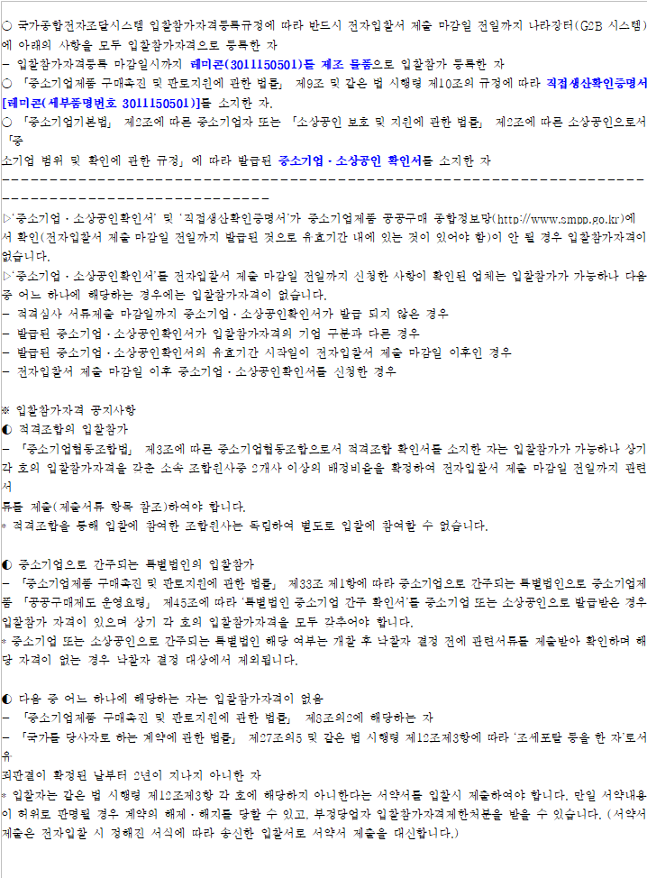 기타 세부사항은 전자입찰 공고서에 첨부된 과업내용서, 내역서 등을 반드시 확인하시기 바랍니다.