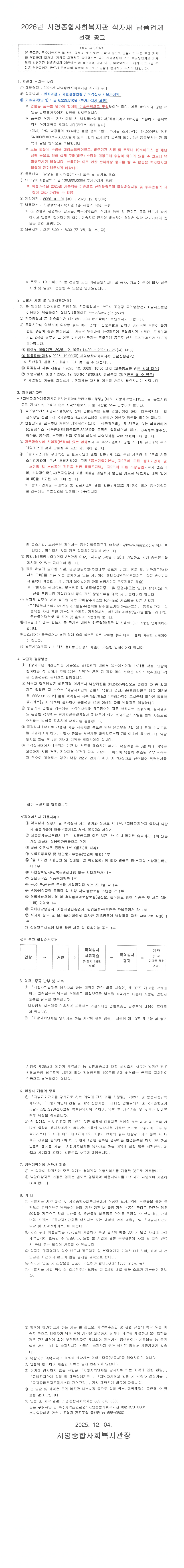 시영종합사회복지관 식자재 납품업체 입찰 선정 긴급공고 |