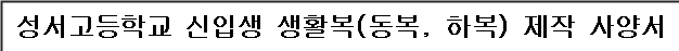 성서고등학교 생활복 사양서(【붙임2】) 참고
