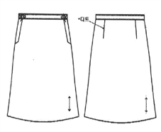 A라인스커트 앞주름 박음선 엉덩이 둘레선 내려오지 않게 함.
