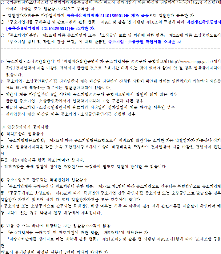 제조물품으로 제한 (경쟁입찰참가자격등록증에 공고서상 물품분류가 제조물품으로 등록되어 있어야 함)