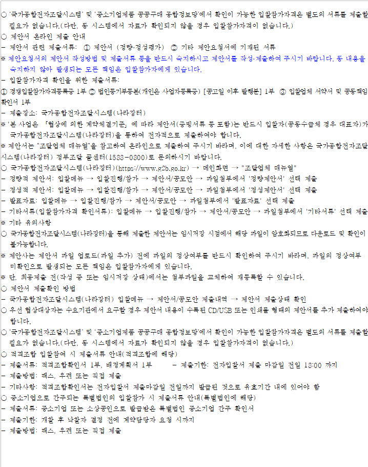 기타 세부사항은 전자입찰 공고서에 첨부된 과업내용서, 내역서 등을 반드시 확인하시기 바랍니다.