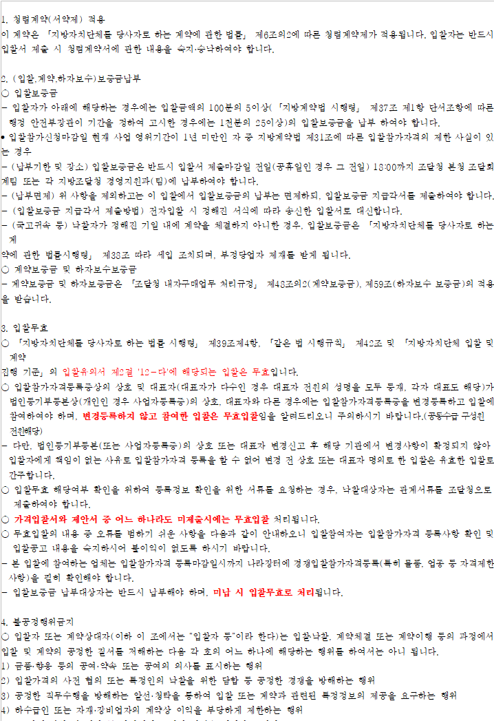 이 입찰 설명서는 입찰자와 낙찰자가 숙지하고 준수하여야 할 사항을 기재한 것으로써 모든 입찰희망자는 이를 열람하여야 합니