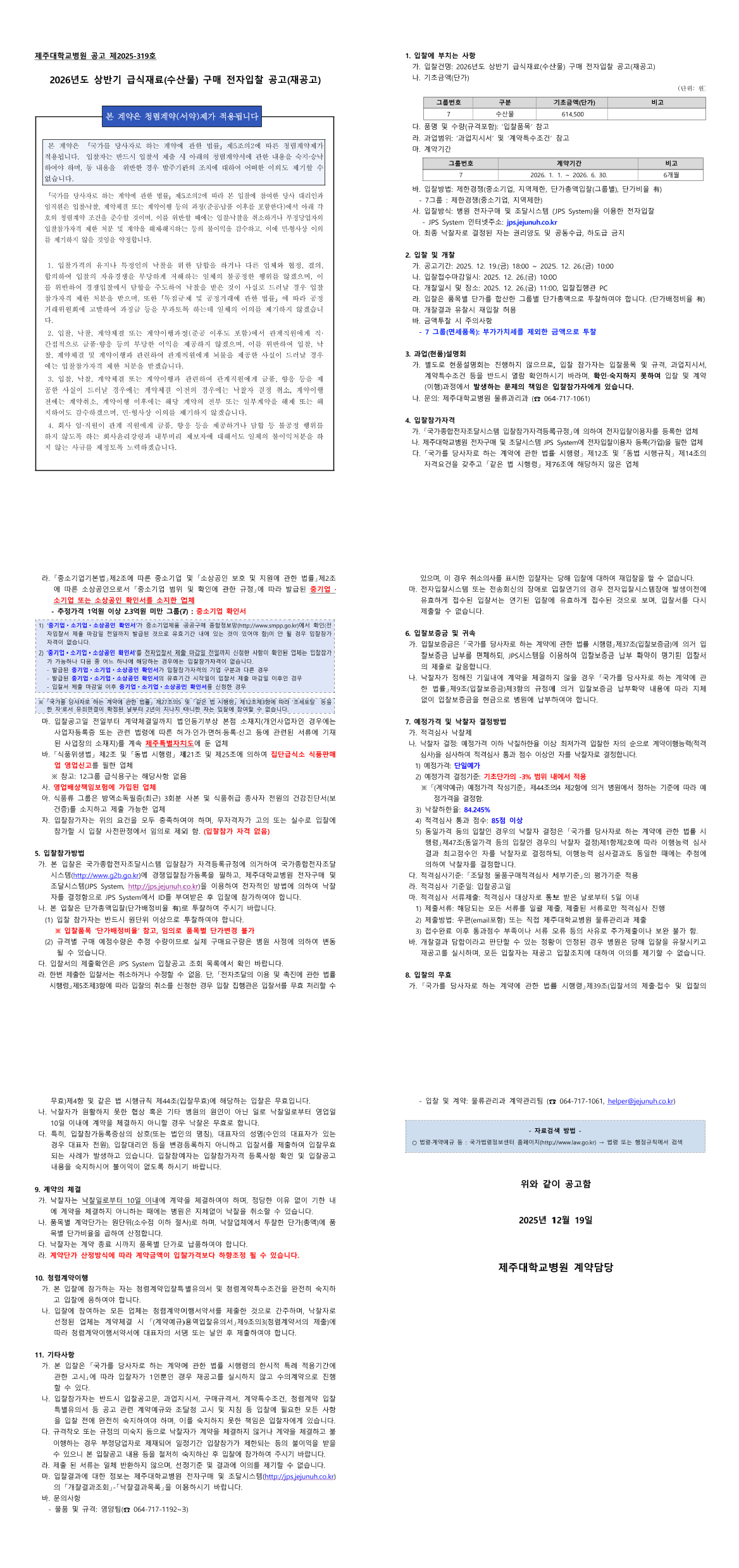 2026년도 상반기 급식재료(수산물) 구매 전자일찰 공고(재공고) |