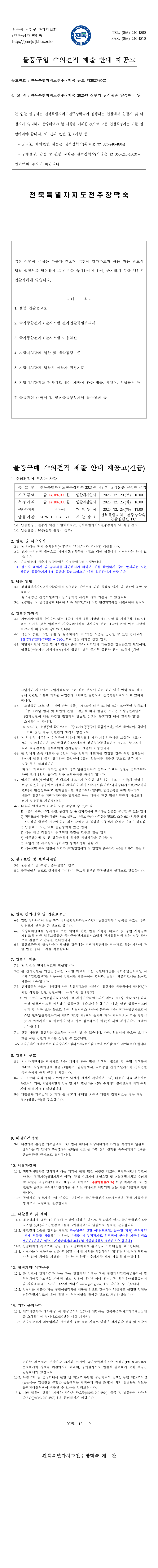전주장학숙 2026년 상반기 급식물품 양곡류 구입 |