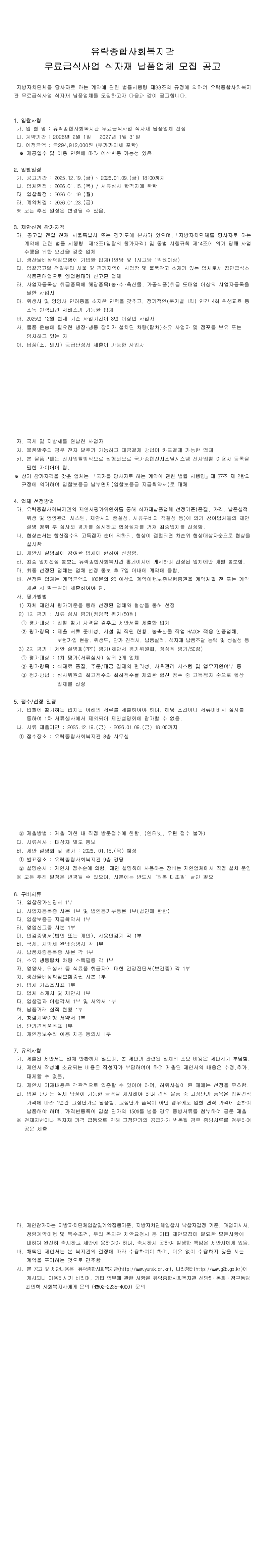 유락종합사회복지관 2026년 무료급식 식자재 납품업체 선정 |