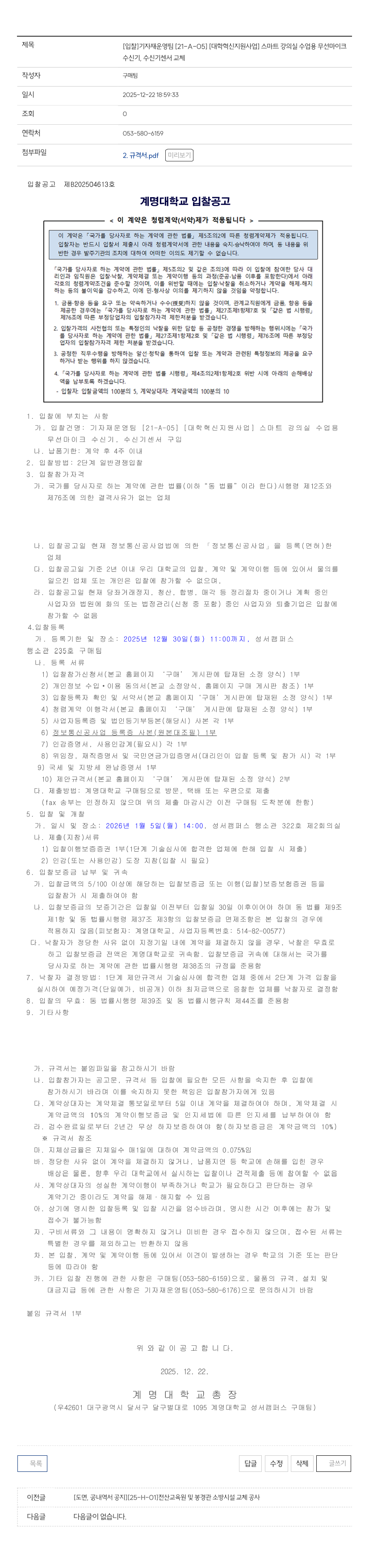 기자재운영팀 [21-A-05] [대학혁신지원사업] 스마트 강의실 수업용 무선마이크 수신기, 수신기센서 구입 |
