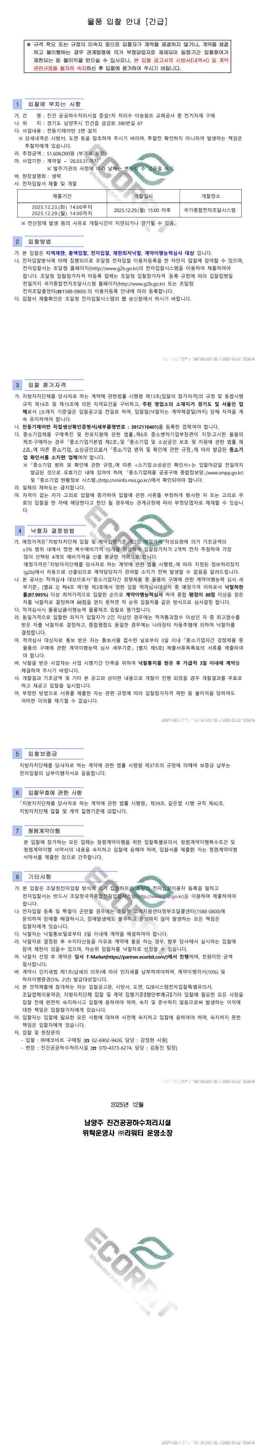 진건 공공하수처리시설 증설1차 처리수 이송펌프 교체공사 중 전기자재 구매 |
