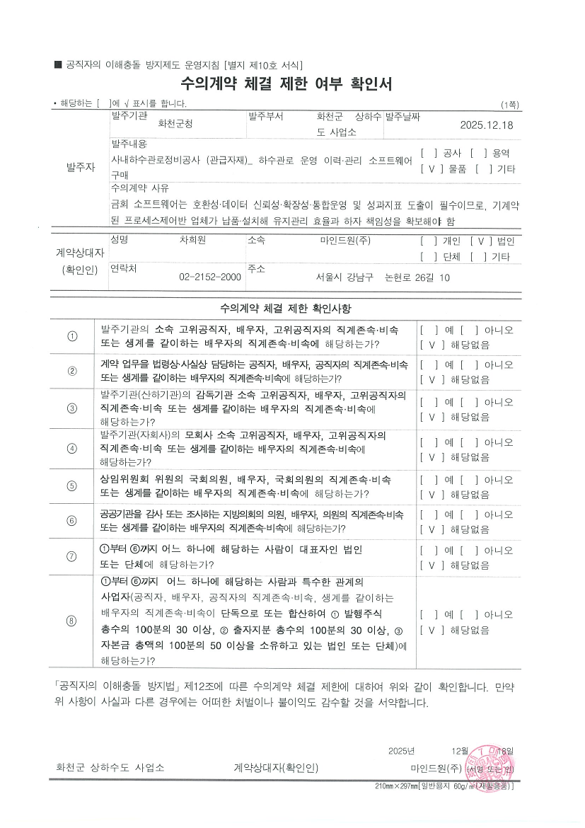 사내하수관로 정비공사(전기 및 계측제어) 관급자재(하수관로 운영·이력관리 소프트웨어 구매) |