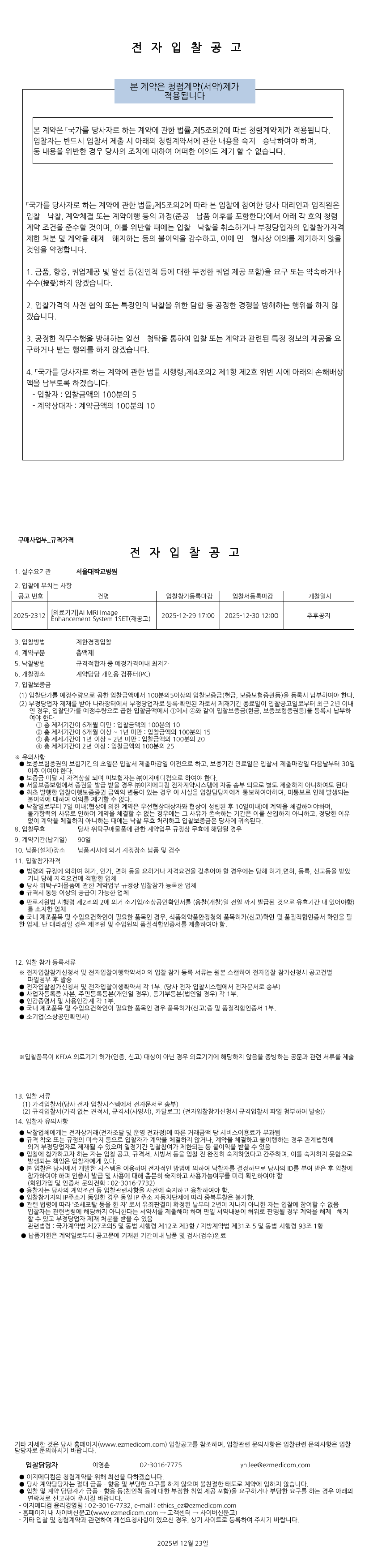 서울대학교병원 [의료기기]AI MRI Image Enhancement System 1SET(재공고) |