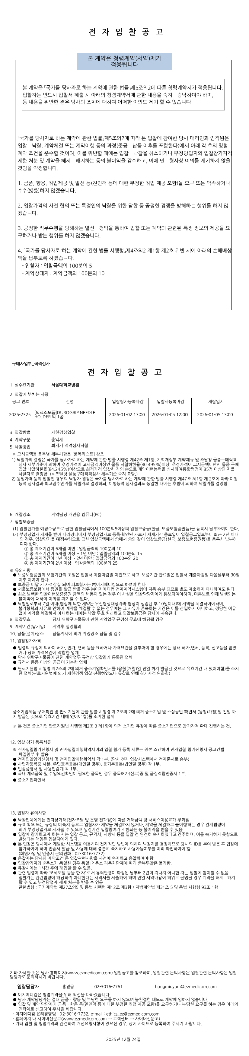 서울대학교병원 [의료소모품]DUROGRIP NEEDLE HOLDER 외 1종 |