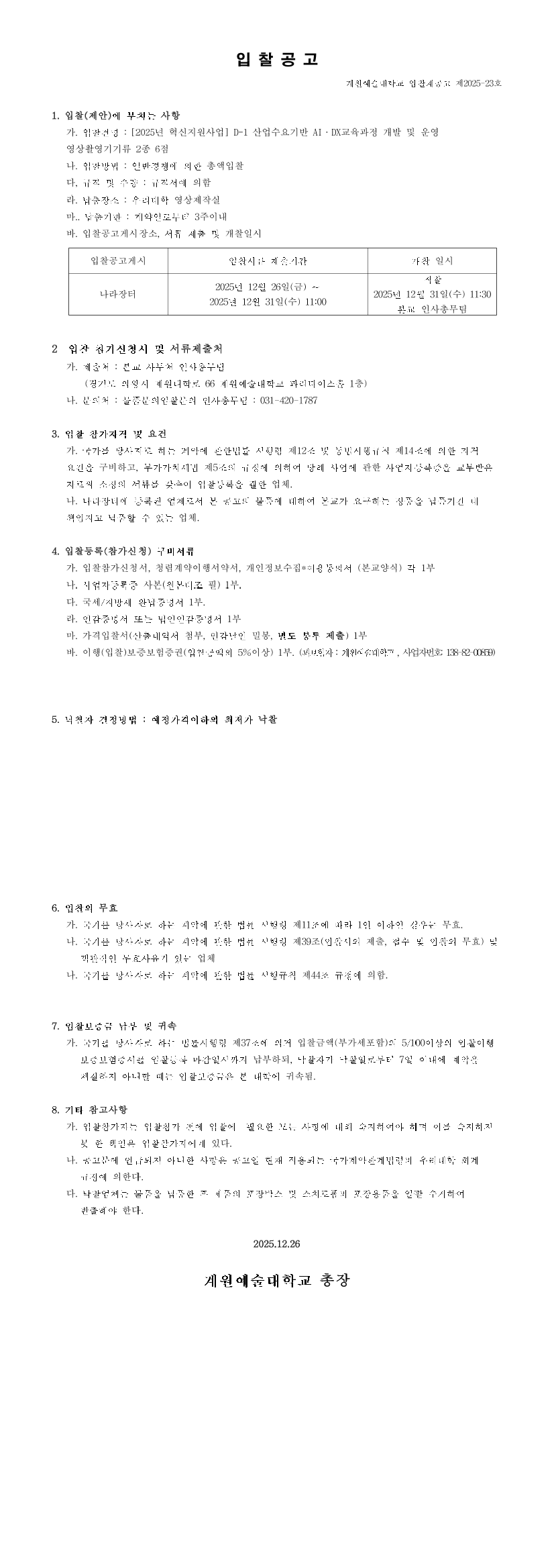 [2025년 혁신지원사업] D-1 산업수요기반 AI·DX교육과정 개발 및 운영 실습지기자재 구매 영상음향기기류 2종 6점 |