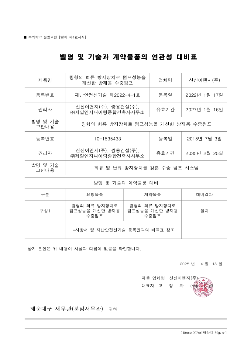 반여1지구 풍수해 생활권 종합정비사업 기계공사(펌프장)_관급자재(수중펌프) |