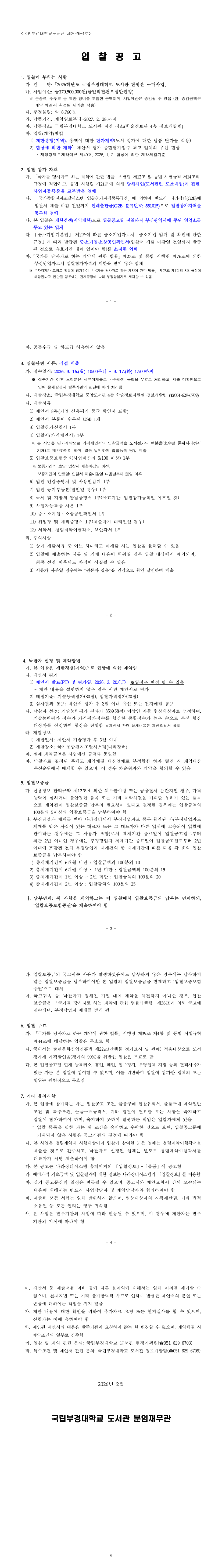 2026학년도 국립부경대학교 도서관 단행본 구매사업 |