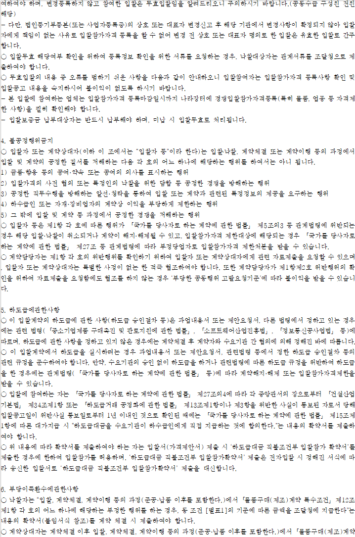 이전인 경우 낙찰자 결정대상에서 제외하거나 결정통보를 취소하며, 계약체결이후인 경우 계약을 해제(해지) 할 수 있으니 유의하시기 바랍니다.